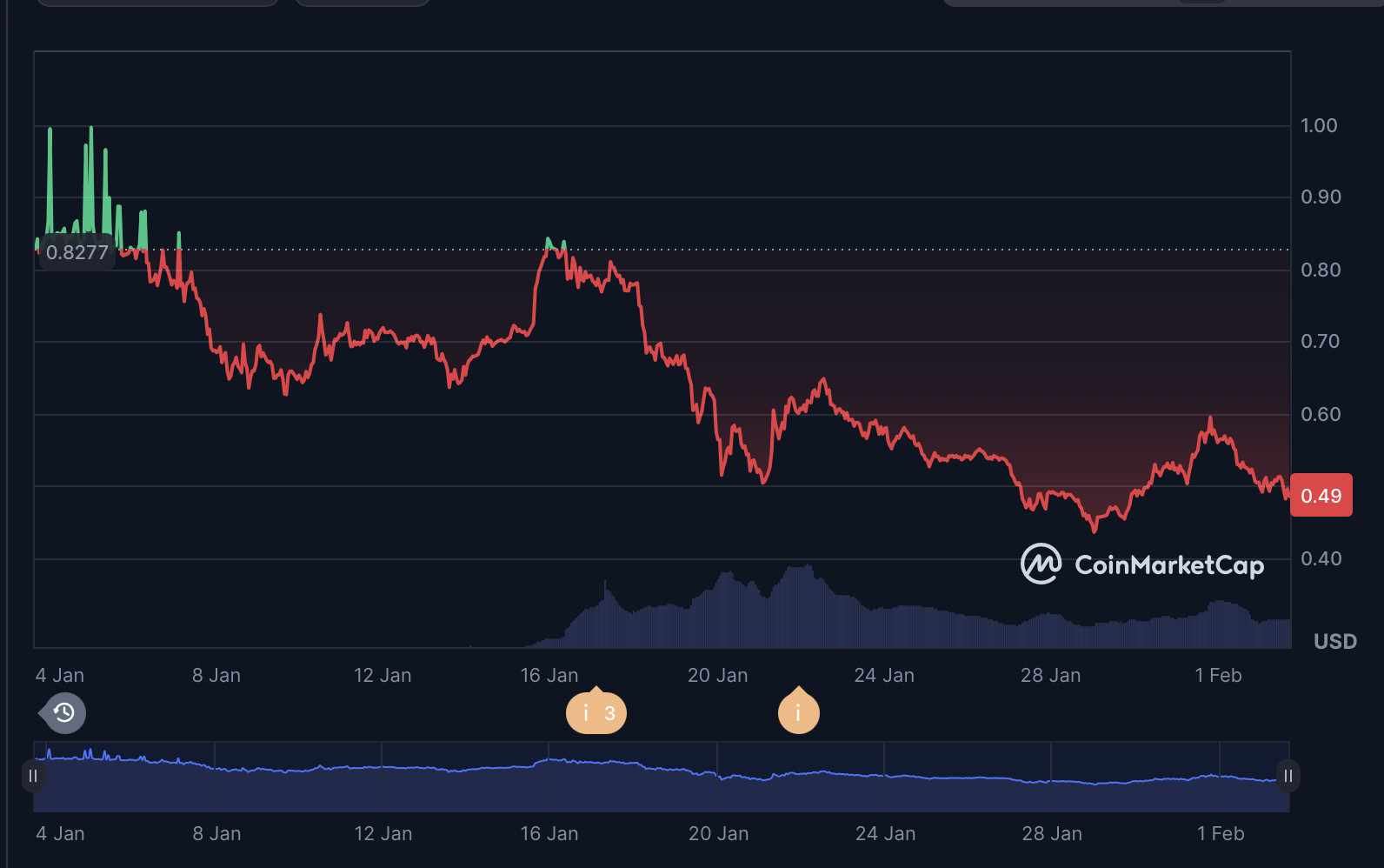 - بعد سحب سوق الدب 2022 أقل من 0.30 دولار ، بدأ السعر في التعافي ، ليصل إلى 0.55 دولار بحلول أوائل عام 2024.