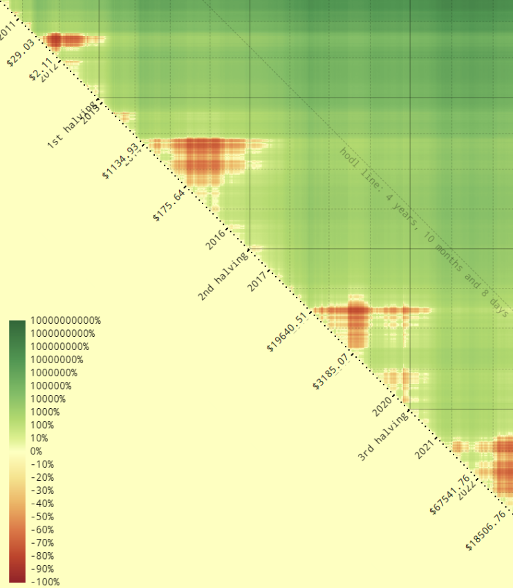 وثمة فرضيات متعلقة بتداول البتكوين على المدى الطويل، وبالتالي تمثيل لفرضية التحوط ضد التضخم وثمة بيانات ترصد عدم خسارة أي شخص اشترى العملة منذ ثلاثة سنوات أو 4 أشهر.