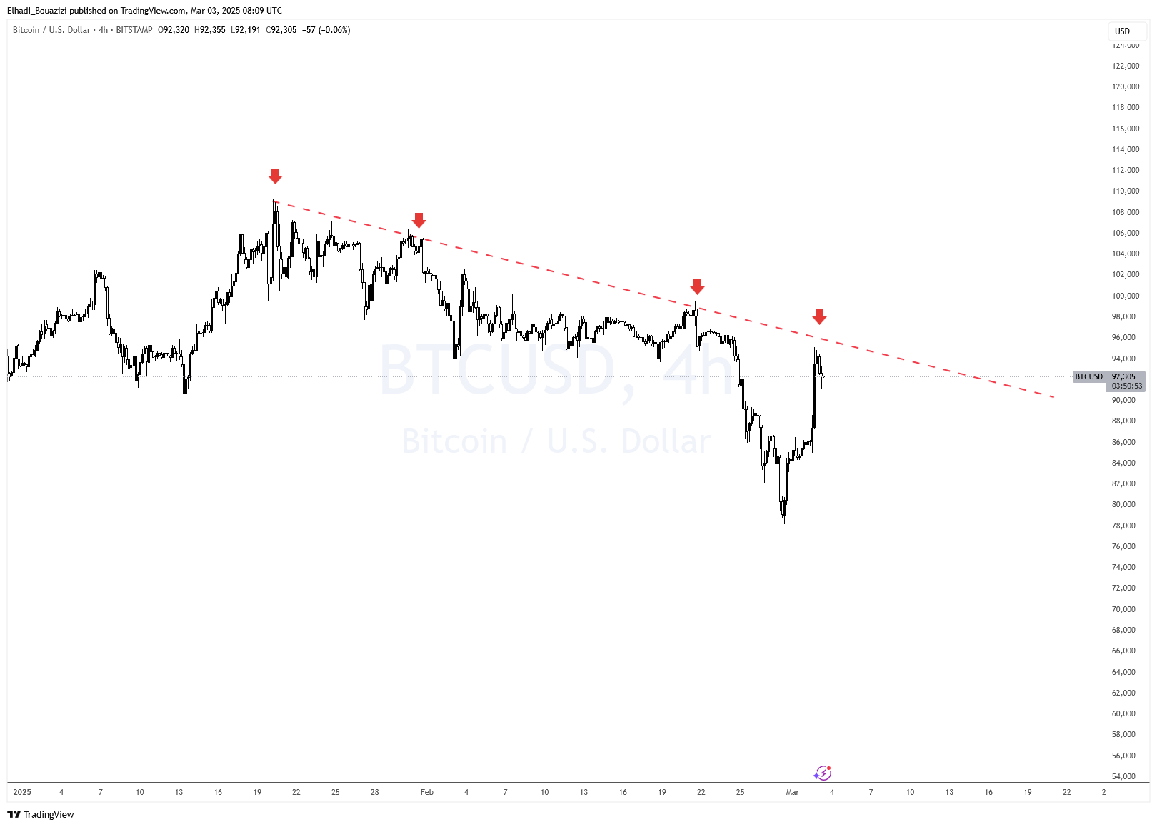 من الجهة الأخرى، إذا عاد السعر تحت مستوى 90,000 دولار، فإن موجة الهبوط ستعود لصدارة.