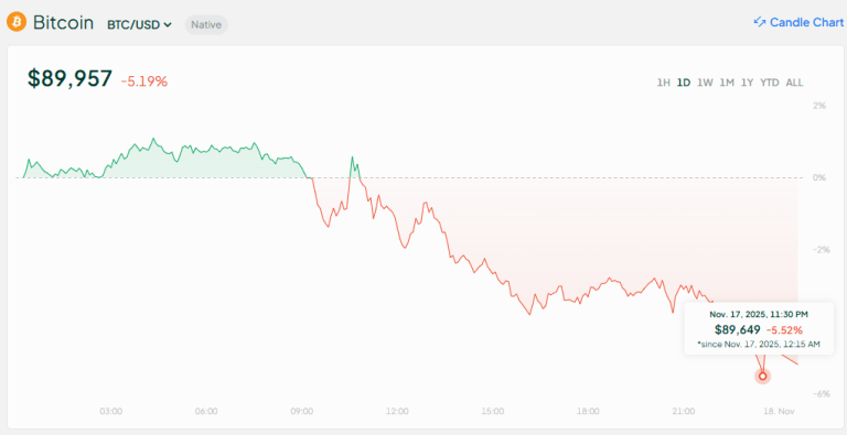 انخفضت البيتكوين إلى 89,649 دولار، وهي أدنى نقطة لها في سبعة أشهر، محولة أدائها السنوي إلى سلبي. -