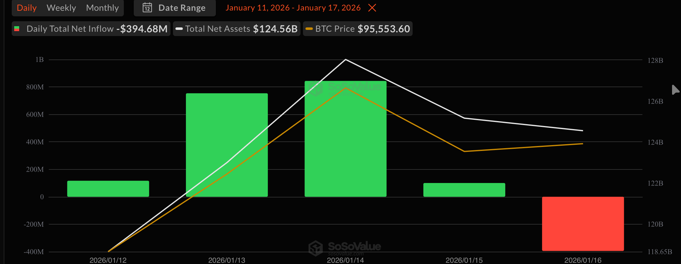 قام المستثمرون بتحقيق الأرباح بعد رالي لعدة أيام، مما أدى إلى تدفق صافي سالب قدره 394.68 مليون دولار من صناديق البيتكوين. -
