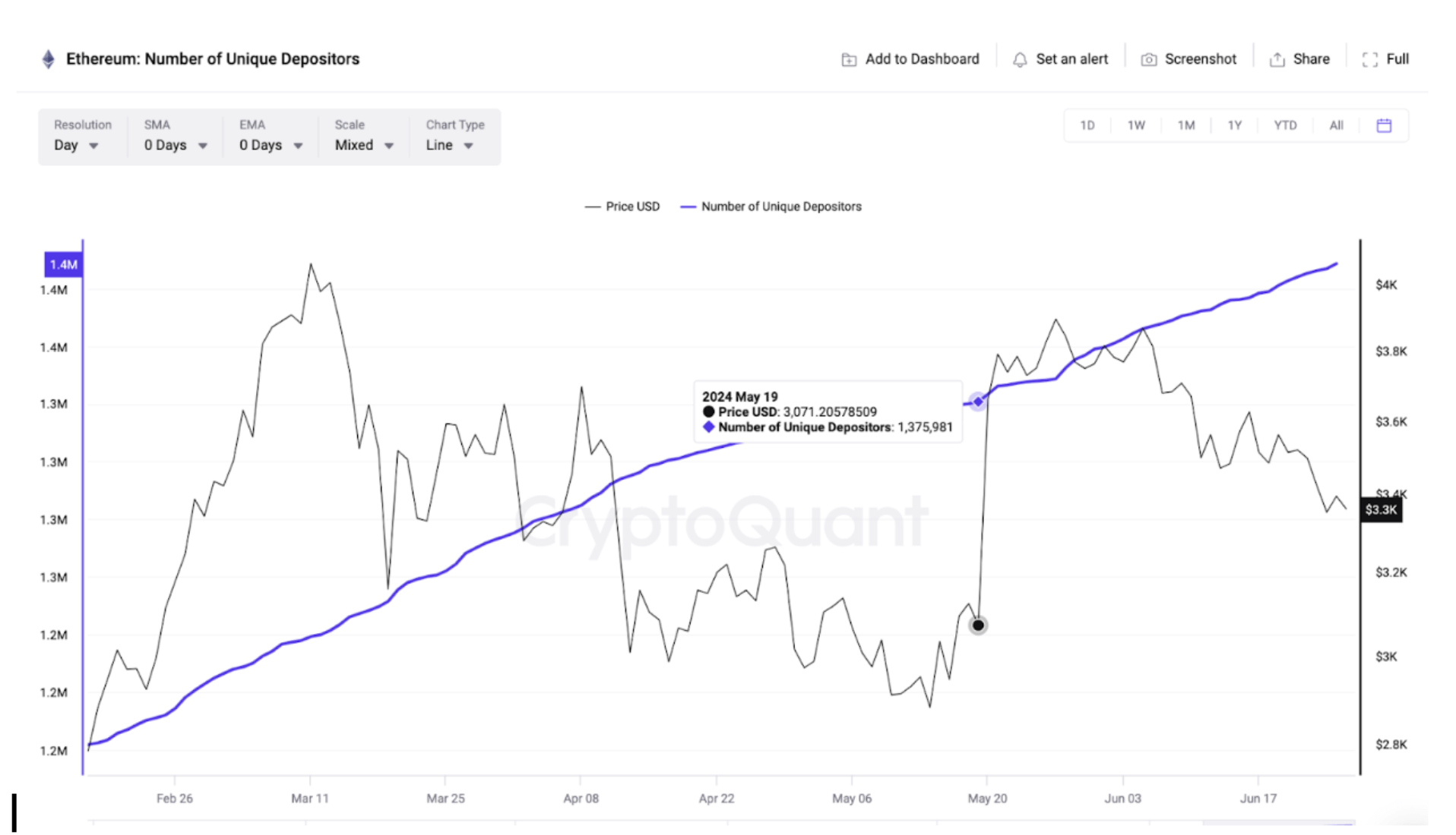 وفقًا لبيانات كريبتوكوانت، انضم ٥٩٨٩٤ مشاركًا جديدًا إلى شبكة التوقيع المساحي لإيثريوم منذ ٢٠ مايو. تزامنت هذه القفزة مع الترقية من فرص الموافقة الفورية إيثيريوم صناديق الاستثمار المتداولة من قبل محللي بلومبرج جيمس سيفارث وإريك بالتشوناس تصل إلى 75٪.