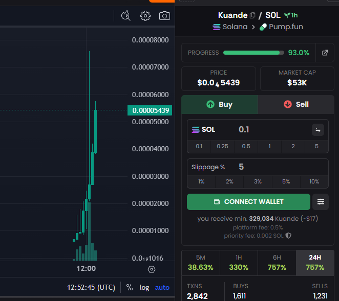 عندما يتعلق الأمر برمز KUANDE ، تم تناوله أيضًا من قبل شيلز ومؤثرات وسائل التواصل الاجتماعي ، حيث نشرت CA إلى X و Telegram. تشبه الإشارات السريعة والبيئة الفورية لـ CA Token حملة MEME منسقة. إذا كان الأمر كذلك ، كانت المحاولة محفوفة بالمخاطر إلى حد ما ، حيث كان لدى Kuande سوى أقصى سوق للسوق قدره 44 ألف دولار ، وهو جزء صغير من الروح المحترق لتشجيع الأصل. لا يزال الرمز بطاقة برية عالية الخطورة ، على الرغم من أنه تمكن من إكمال 91 ٪ من في المضخة في غضون ساعتين.