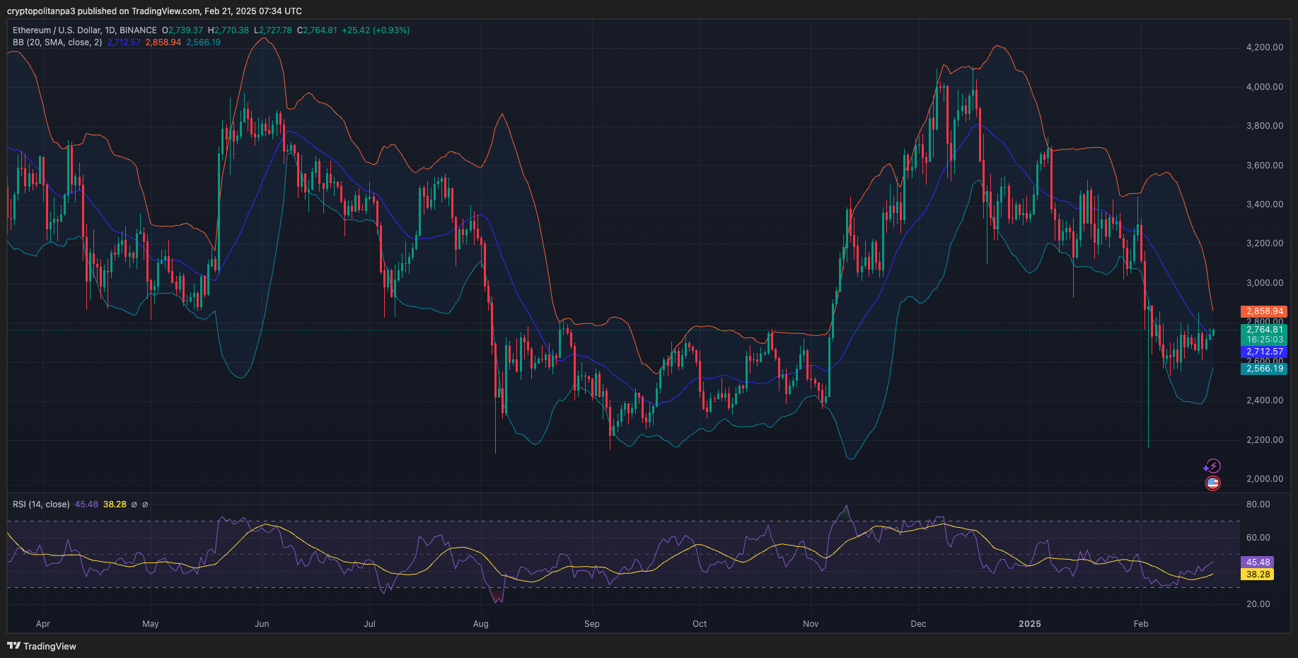 - اعتبارًا من فبراير 2025 ، يتم تداول $ETH عند 2،796 دولار.