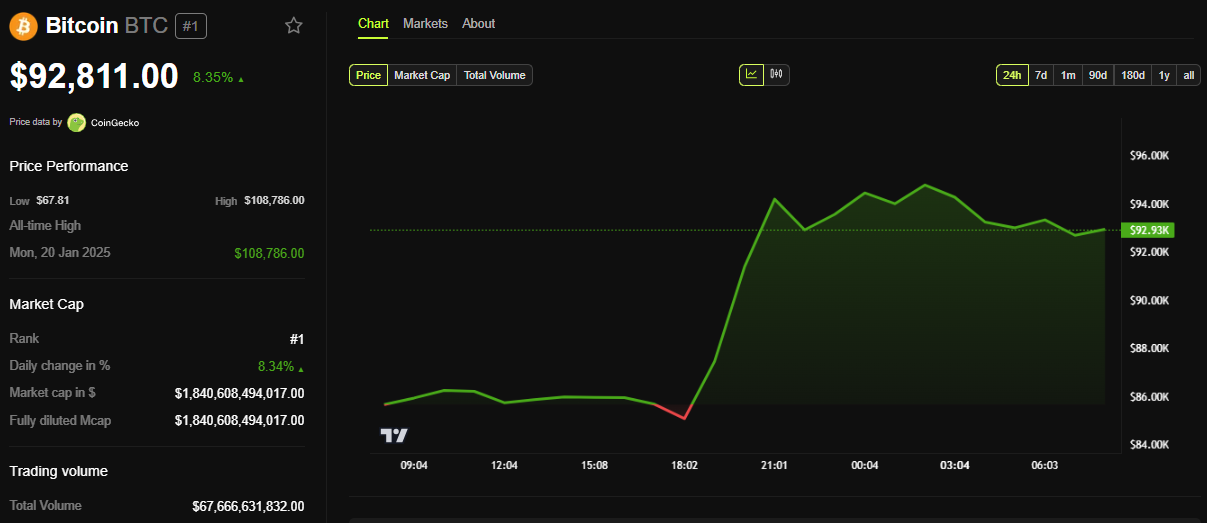 حتى كتابة هذه السطور، كان بيتكوين يتداول بسعر ٩٢٬٨١١ دولار، بزيادة تزيد عن ٨% منذ افتتاح جلسة الاثنين. مع اقتراب هذه النقاط الخمس من البيانات، فإن التقلبات مضمونة.