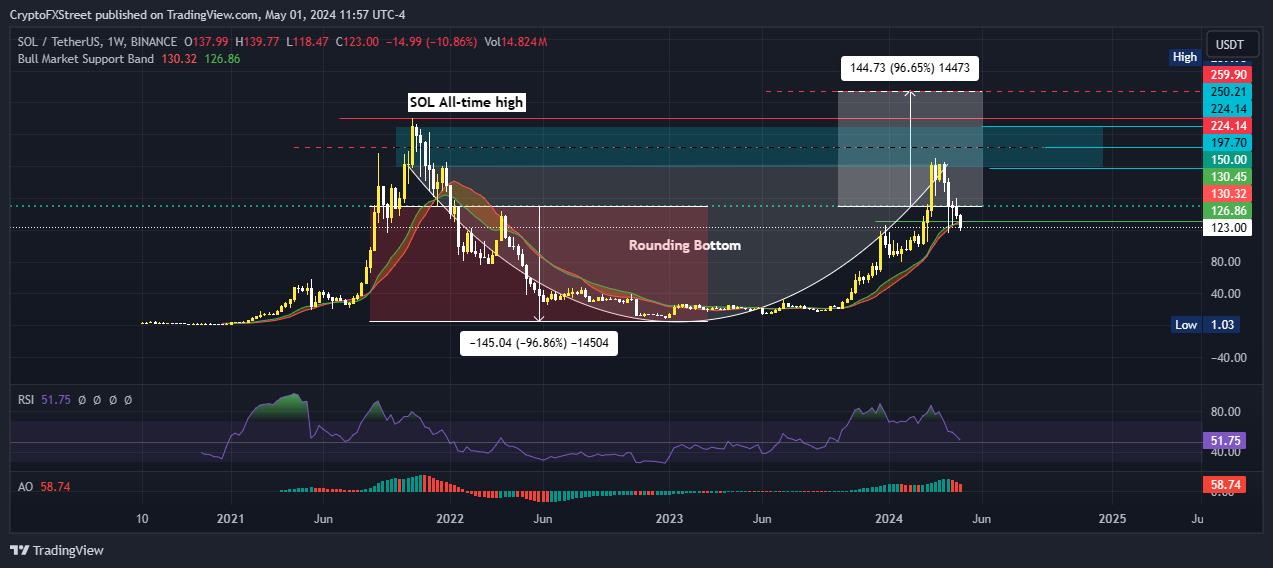 Der Solana-Kurs hat sich von den Tiefstständen bei 120 $ deutlich erholt. Bei Redaktionsschluss lag der SOL-Kurs um 11,24 % höher bei 133 $. Gelingt Solana ein Candlestick-Schluss über der Nackenlinie des Rounding-Bottom-Musters, das derzeit bei 126,86 $ liegt, werden größere Long-Positionen eröffnet.