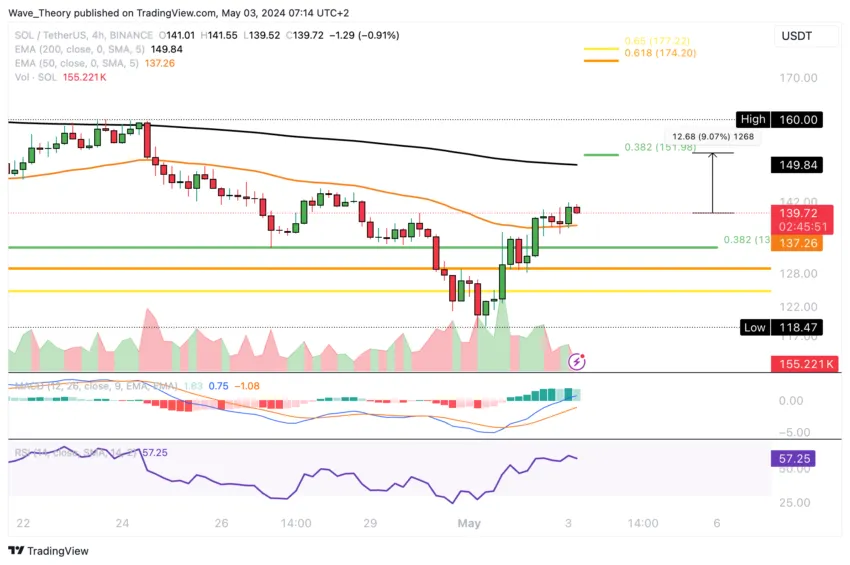 Der nächste signifikante Widerstand liegt am 50-Tage-EMA bei rund 150,4 USD. Dort wurde Solana vor einigen Tagen bärisch abgewiesen.