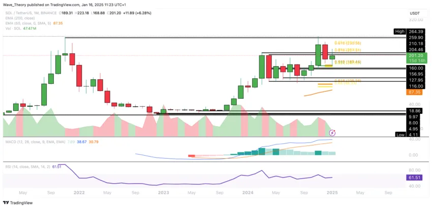 Sollte Solana den Golden Ratio Widerstand bei rund 210 USD überwinden, wartet bei rund 230 USD der nächste signifikante Fibonacci Widerstand. Mit einem bullischen Bruch könnte Solana das letzte Hoch bei rund 264 USD anvisieren oder gar übersteigen.