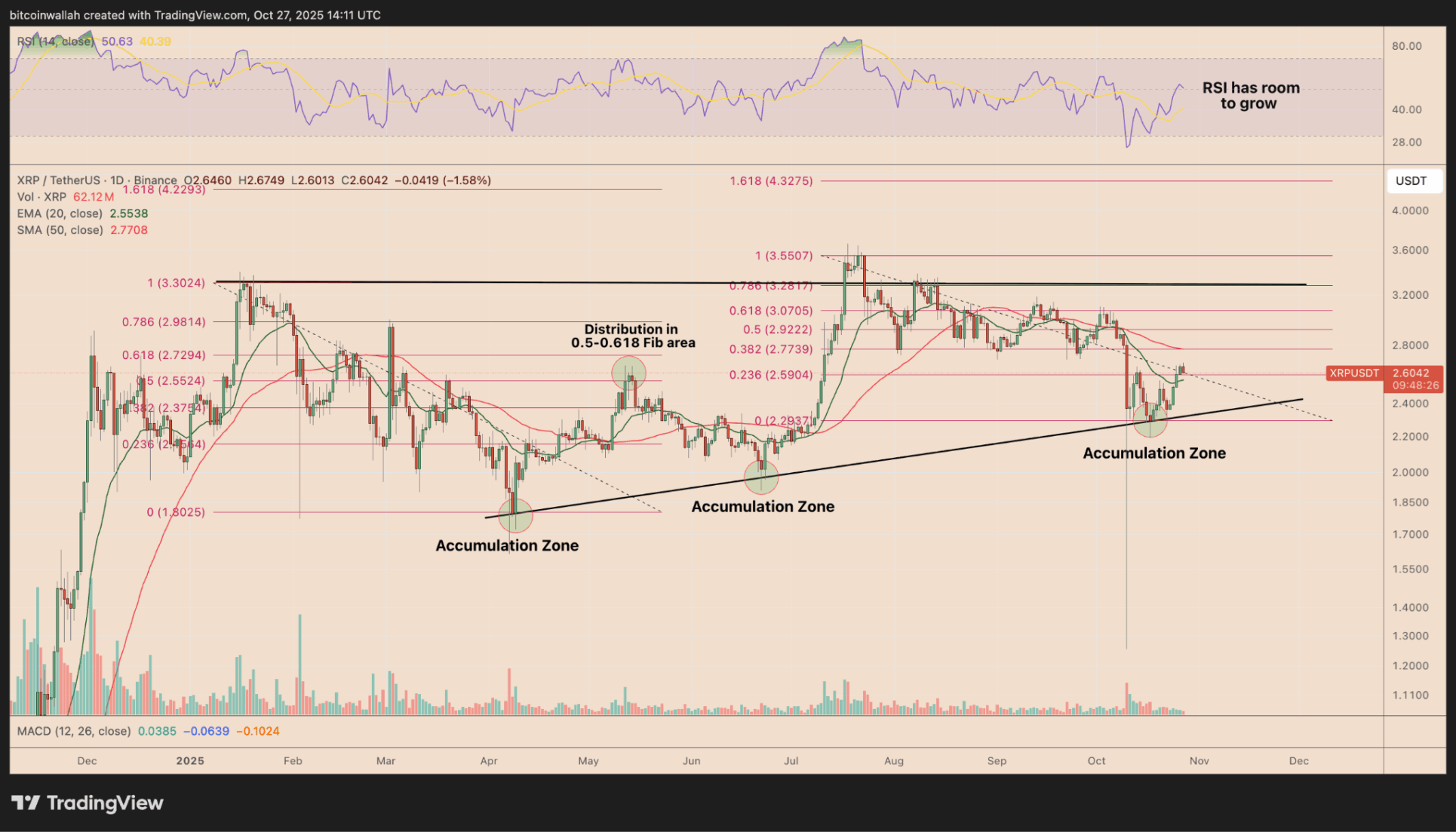Am 11. Oktober erlitt XRP noch einen kräftigen Schlag: Der Kurs stürzte auf einen Tiefststand von 1,25 Dollar. Doch die Flaute hielt nicht lange an. In den Wochen danach legte die Kryptowährung eine beeindruckende Erholung hin. Zum Zeitpunkt des Schreibens liegt der Kurs bereits wieder über 2,60 Dollar – mehr als eine Verdopplung in kurzer Zeit.