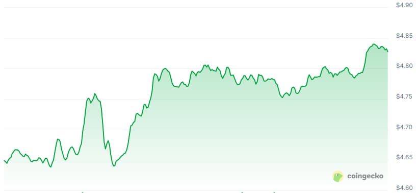 Die Nachricht über Bitwises Schritt ging einher mit einem deutlichen Anstieg des $UNI-Kurses – dem nativen Token von Uniswap. In den letzten 24 Stunden ist $UNI um 4 % auf 4,83 US-Dollar (4,03 Euro) gestiegen.