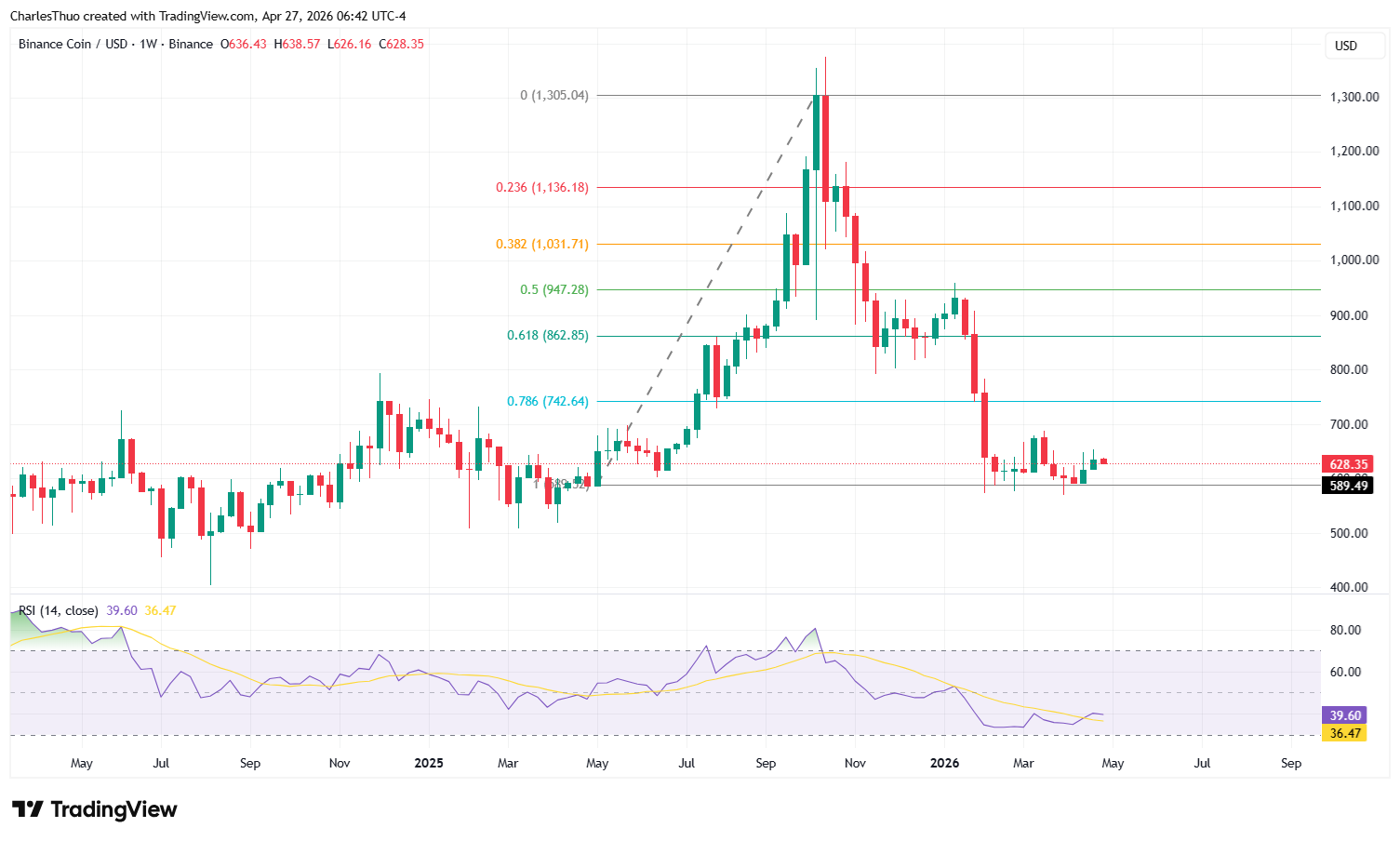 Das schuf eine Decke, die der $BNB-Kurs nur schwer durchbrechen konnte, was zu wiederholten Abweisungen und einem allmählichen Rückgang zu niedrigeren Unterstützungsniveaus führte.