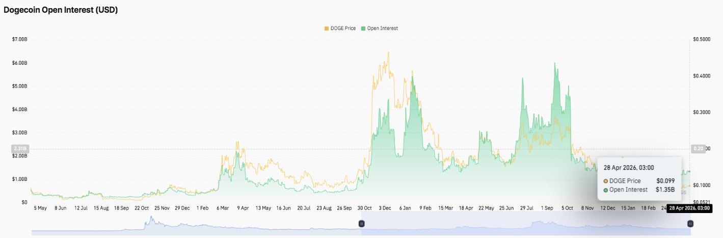 Die technische Struktur deutet darauf hin, dass $DOGE unter dem Widerstand komprimiert und dabei höhere Tiefs bildet, was eine klassische Fortsetzung schafft, in der die Volatilität in beide Richtungen folgen könnte. Die Erholung des offenen Interesses bei etwa 1,35 Milliarden US-Dollar und sich verbessernde Spot-Zuflüsse unterstützen den bullischen Fall und deuten darauf hin, dass das spekulative Interesse allmählich zurückkehrt.