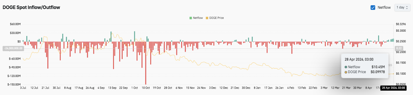 Auf der Aufwärtsseite kämpft $DOGE weiterhin in der Widerstandszone zwischen 0,0995 und 0,1000 $. Dieses Niveau hat den Preis mehrfach begrenzt, was es zu einem klaren Auslöser macht. Folglich würde ein sauberer Abstieg über 0,1022 $ die Stärke bestätigen und wahrscheinlich Momentum-Käufer anziehen.