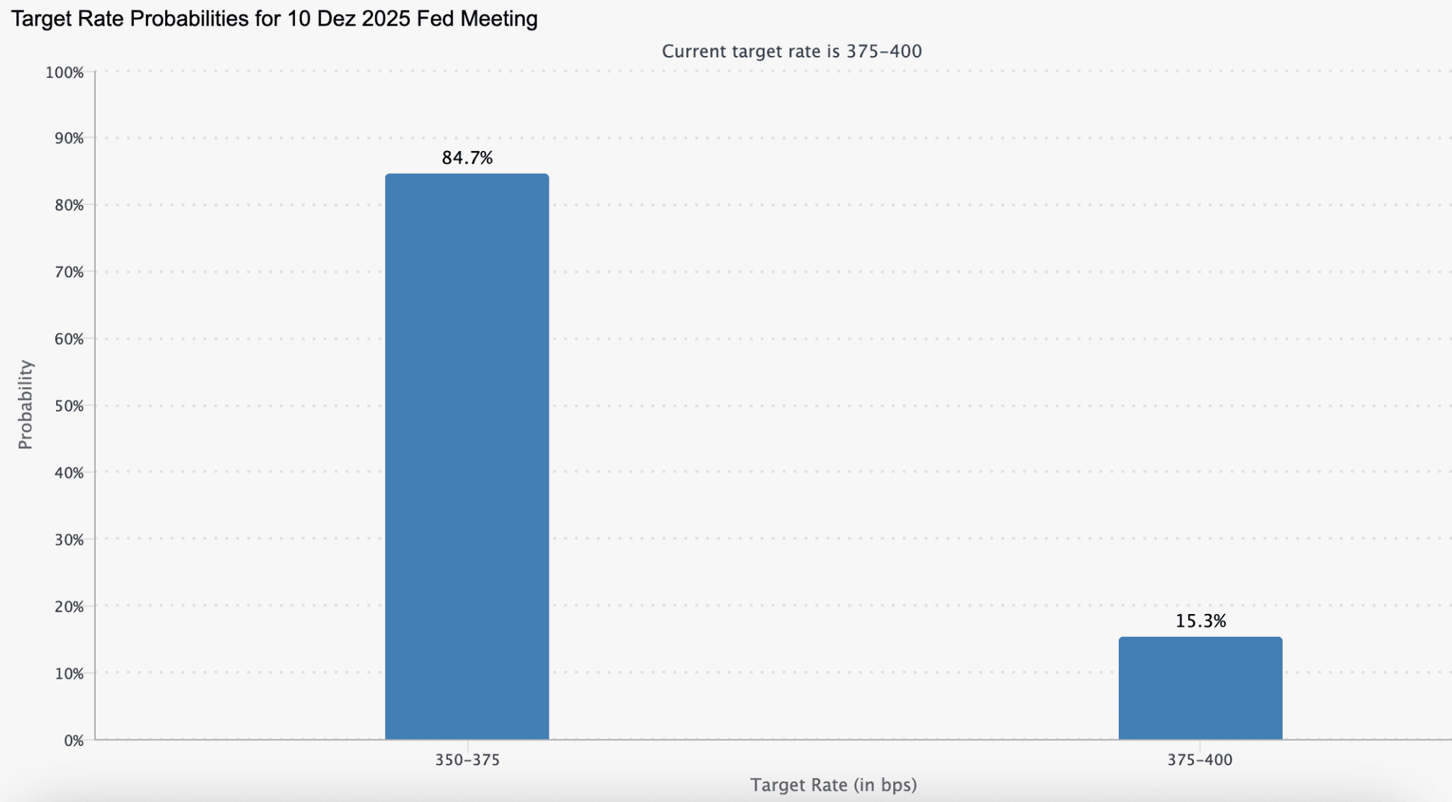 Ich habe gesehen, dass die Wahrscheinlichkeit für eine weitere Zinssenkung bei 84,9 Prozent liegt. Diese Zahl zeigt mir sehr deutlich, in welche Richtung sich der Markt aktuell bewegt.