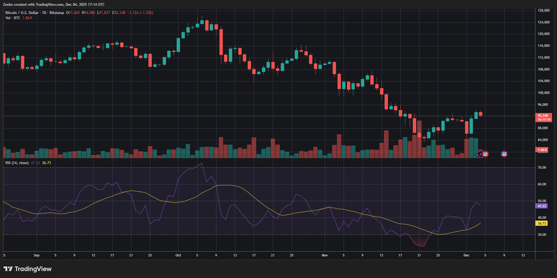 current price:$92,703#Btc market dominance:57.1% pic.twitter.com/Es6xq8TQ1d— Utility token 🪙 (@Utillitytoken) December 4, 2025