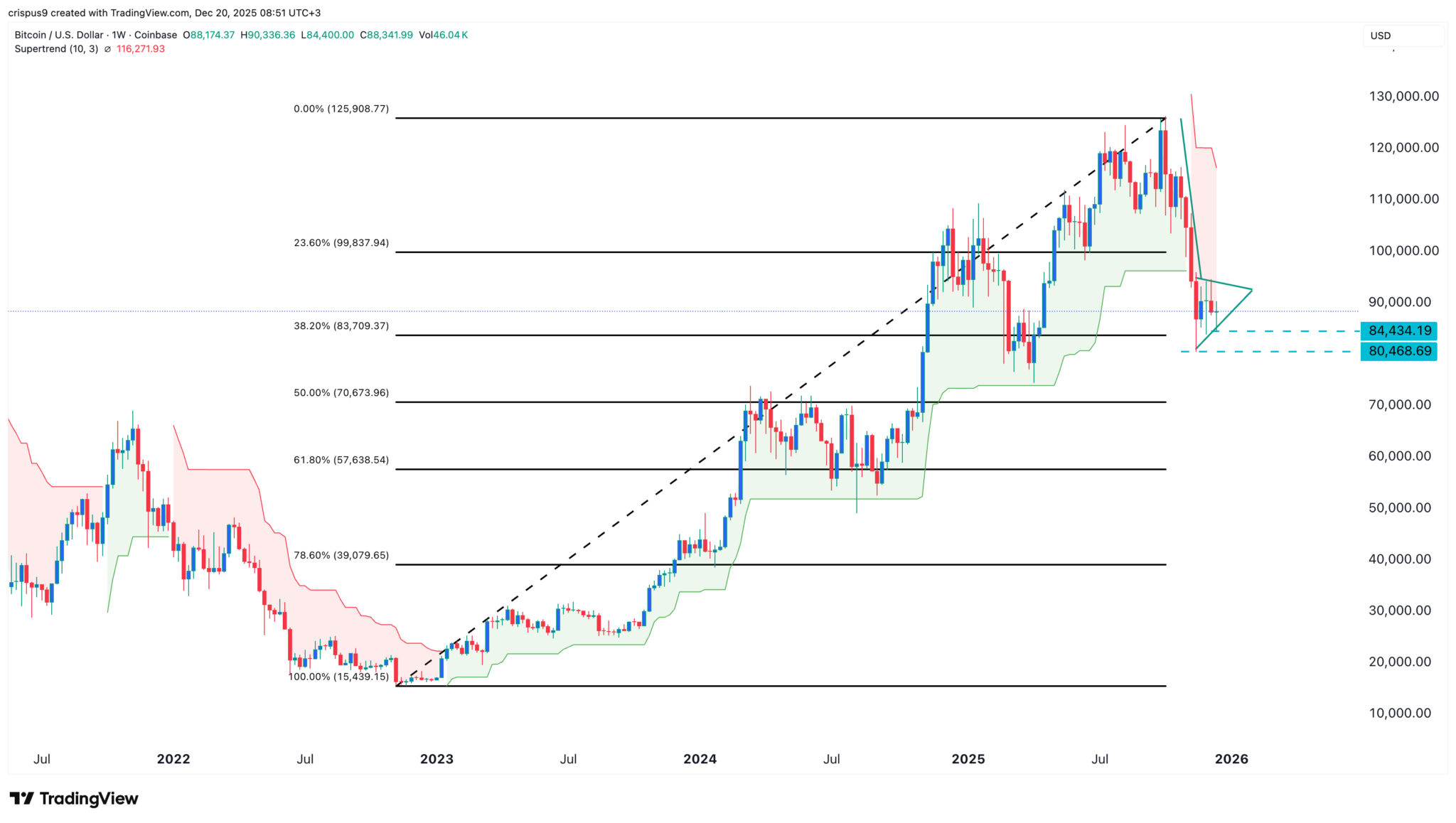 Daher ist die wahrscheinlichste BTC-Kursprognose bärisch, wobei die nächste wichtige Unterstützung das 50%-Fibonacci-Retracement-Level bei 70.000 $ ist. Dieser Rückzug wird bestätigt, wenn der Coin unter das Tief des letzten Monats von 80.468 $ fällt.