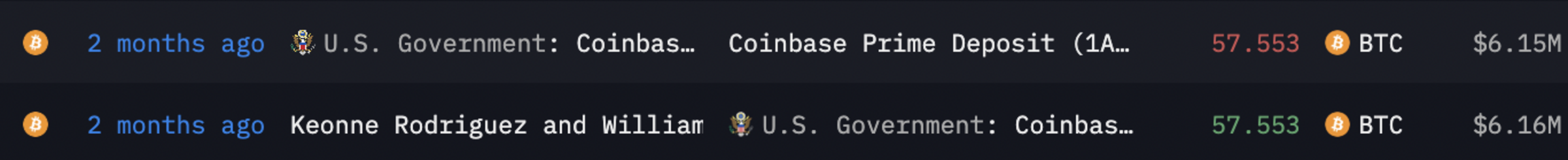 Über On-Chain-Daten ist zudem nachzuvollziehen, dass dieser Betrag am 3. November 2025 tatsächlich aus der in dem Dokument genannten Adresse von Rodriguez und Hill geflossen ist. Weiter ist ersichtlich, dass die Coins unmittelbar auf eine Einzahlungsadresse des Dienstleisters Coinbase Prime weitergeleitet wurden.