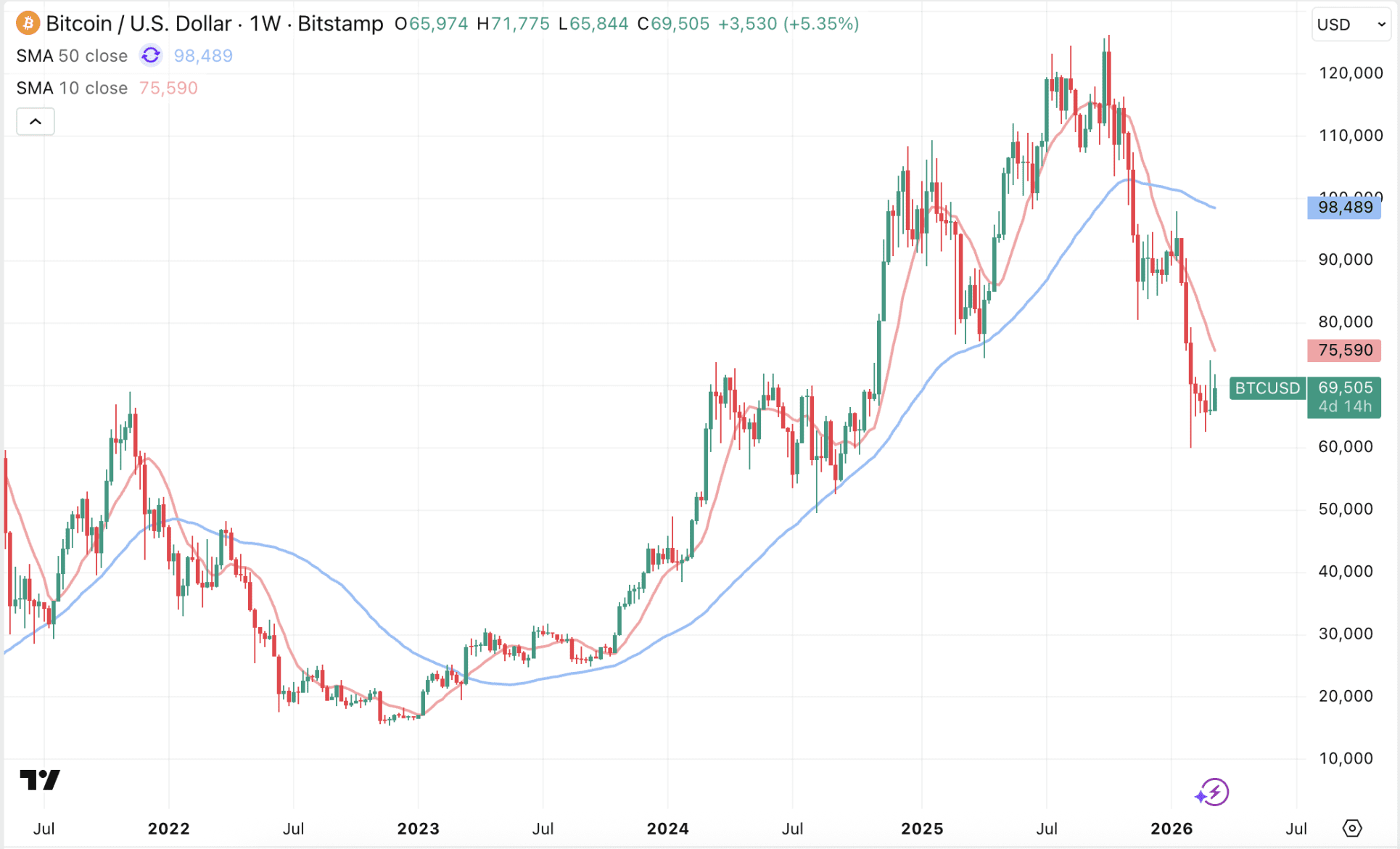 Erst wenn Bitcoin den 50-Wochen-Durchschnitt von 98.489 Dollar durchbricht, können Anleger von einem neuen Bullenmarkt träumen. Vorerst geht es darum, einen Boden zu finden.