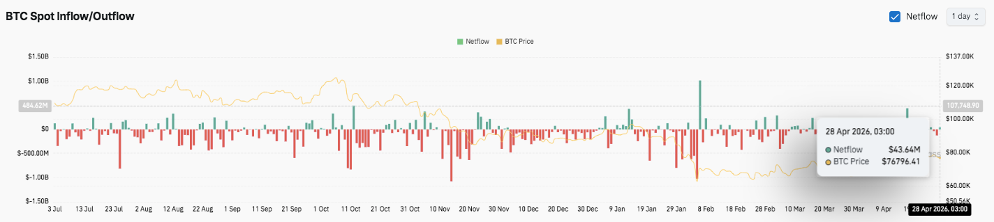 Die kurzfristige Richtung von Bitcoin hängt davon ab, ob Käufer die Unterstützung von 76.600 $ verteidigen können, während sie den Widerstandscluster von 78.500 $ bis 79.500 $ herausfordern. Anhaltende Zuflüsse und verbesserte Stimmung könnten einen Ausbruch in Richtung 81.000 US-Dollar und darüber auslösen.