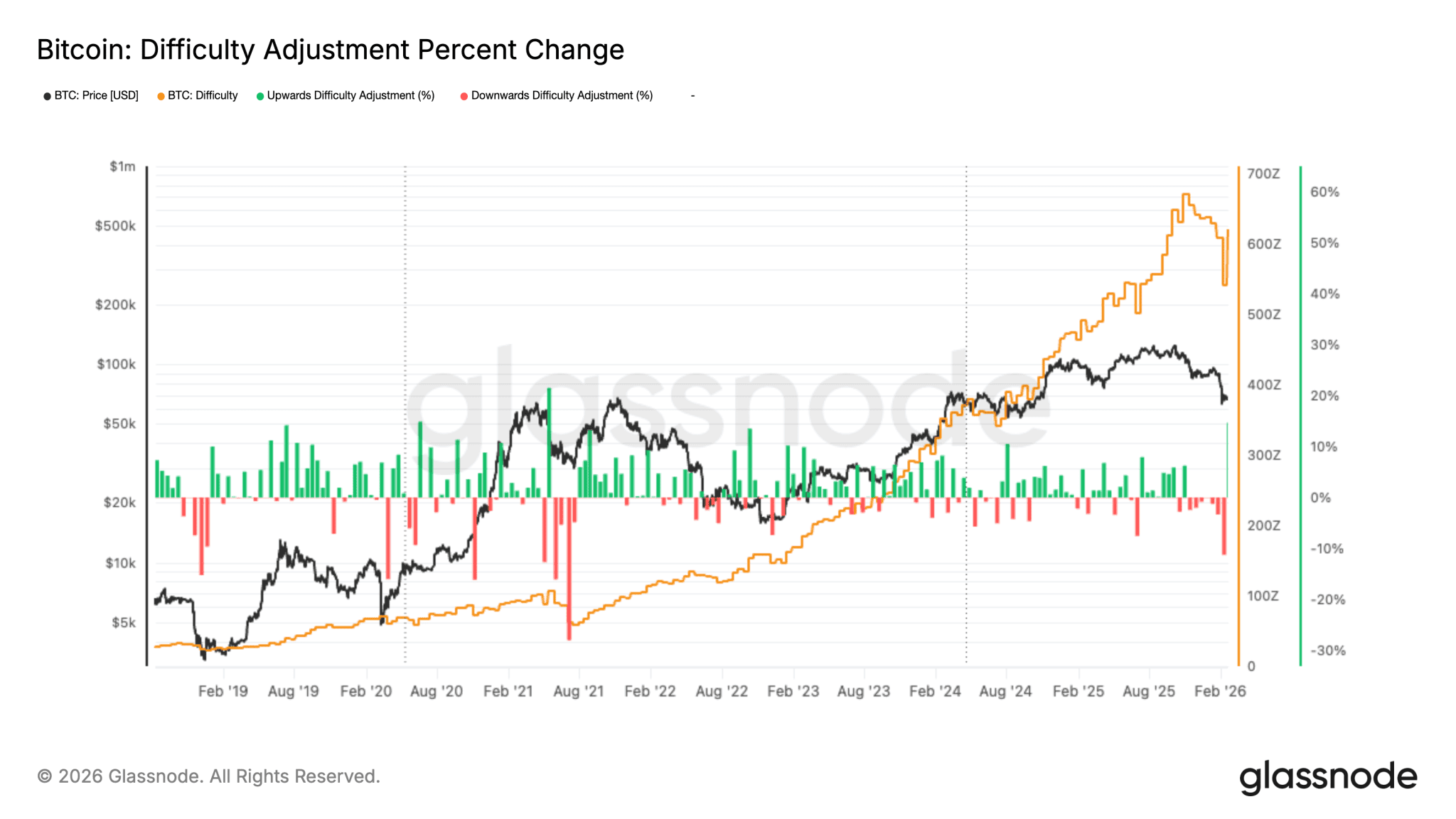 Prozentuale Anpassung der Mining-Difficulty | Quelle: Glassnode