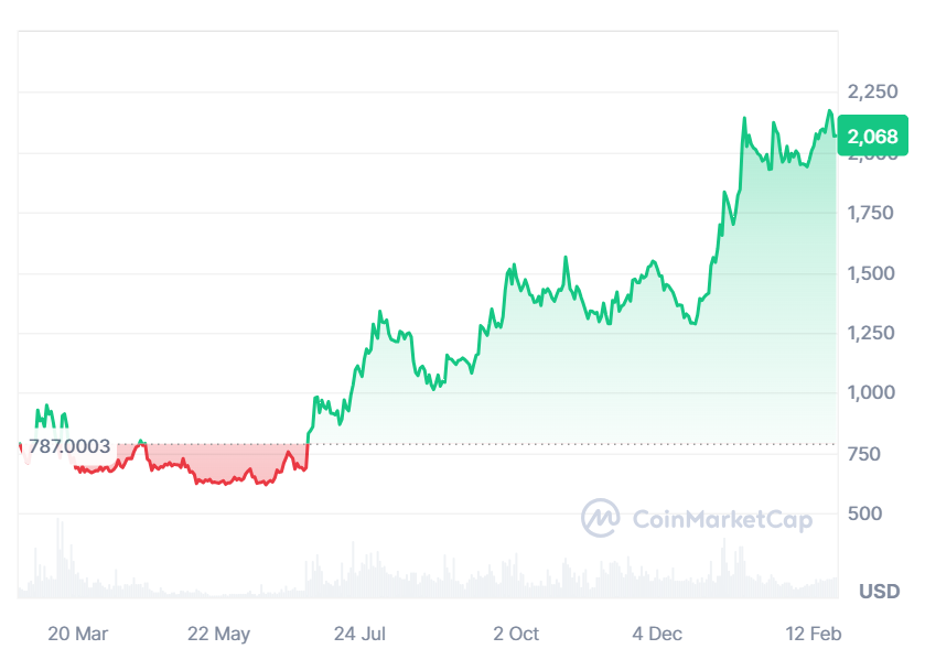 The journey of the $MKR token in the last year proves the resilience. The token is up by more than 160% in the one year and is trading at $2,068. $MKR community sees the token parting the distance with new highs and moving ahead for a breakout soon.