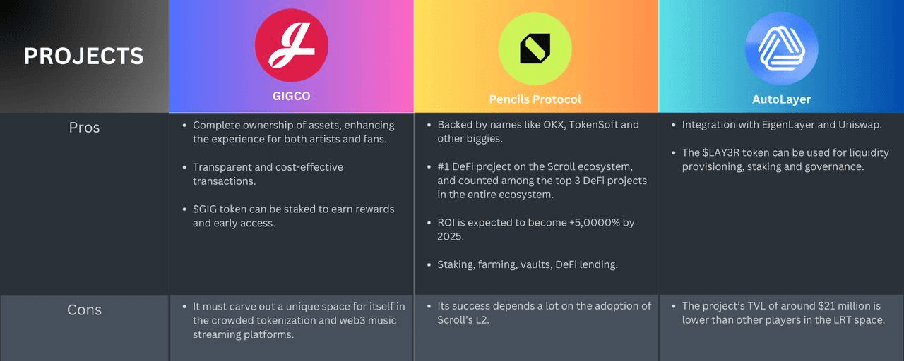 We hope this comparison helps you make the right decision. While Pencils Protocol is the safest when you consider factors like TVL and growth potential, remember to take note of the interesting use cases of the other two as well. And as always, DYOR!