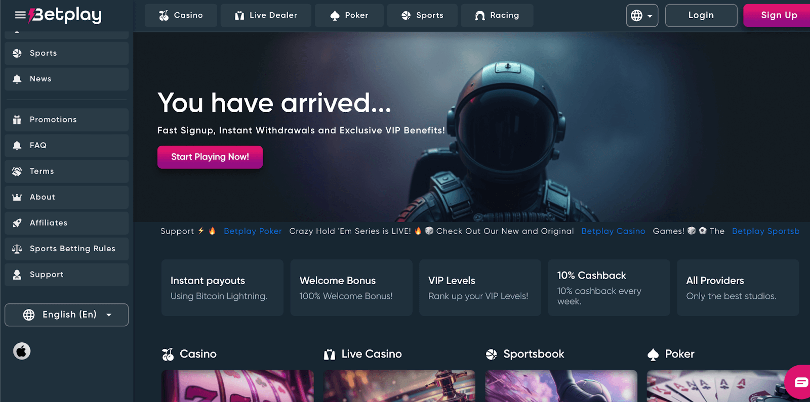 The crypto casino’s hip and edgy interface design makes spinning the reels even more exciting. The proper location of all primary tabs and a lucrative welcome bonus ideally contribute to an exceptional gambling experience.