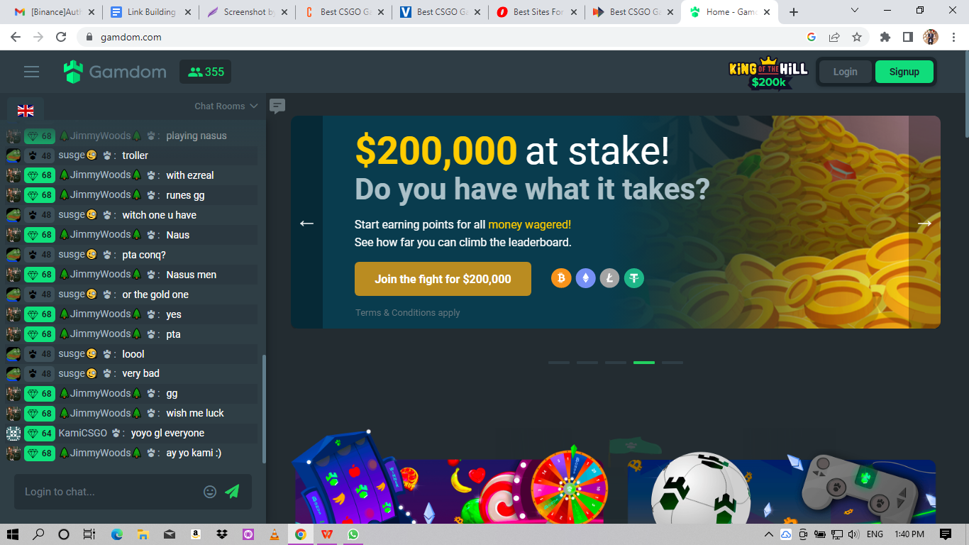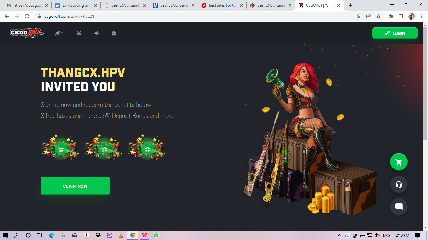 - Once all the above steps are completed, players can now login, claim cases and start trying out the available games; fund your account with either skins or cash.