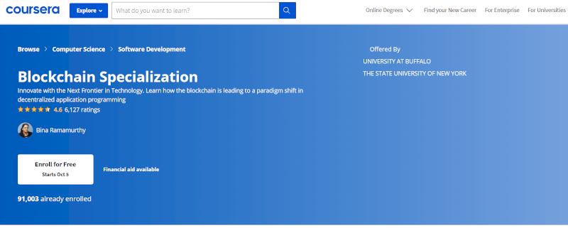 As a matter of fact, the biggest number of students with high careers in the blockchain world have completed their education at Harvard. There’s a 6-week course available that tackles all the industries of interest, such as blockchain, banking, and real estate. On top of this, you can find 6 free online courses on the topic on Coursera.