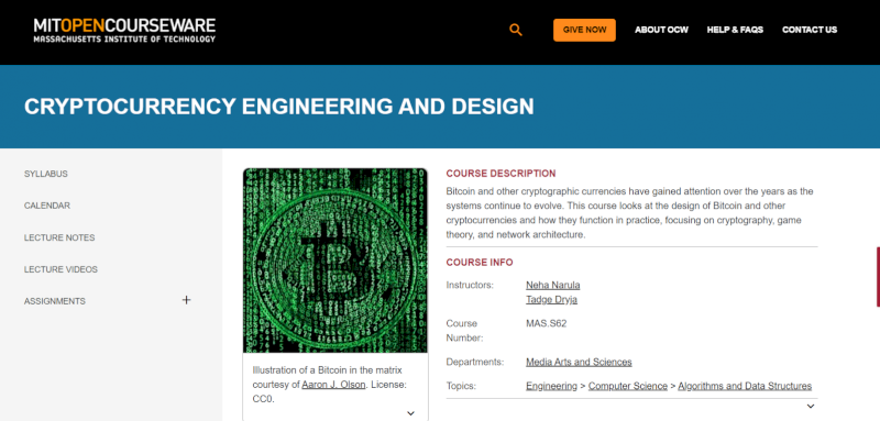 - Cryptocurrency Engineering and Design (this is one of the free online courses)