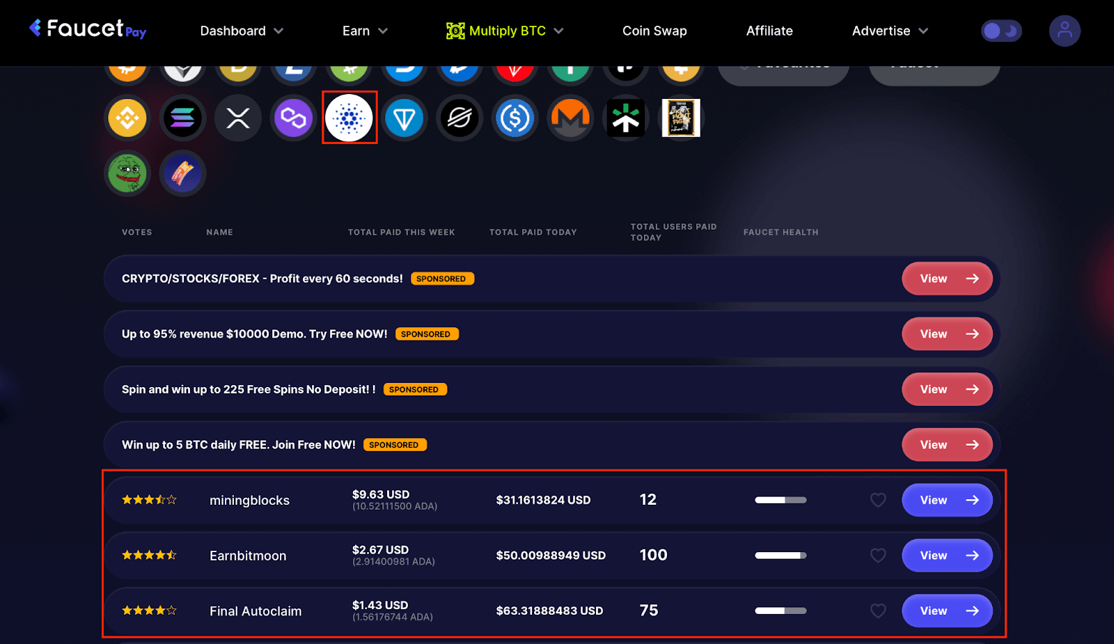 If you want to earn ADA without financial risk, faucets offer a direct and user-friendly solution. In under 10 minutes, you can earn from verified sources using your browser and a FaucetPay account.