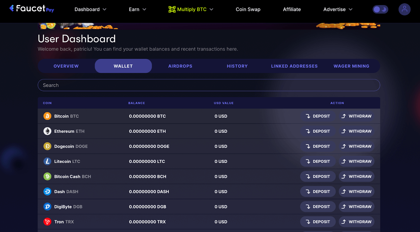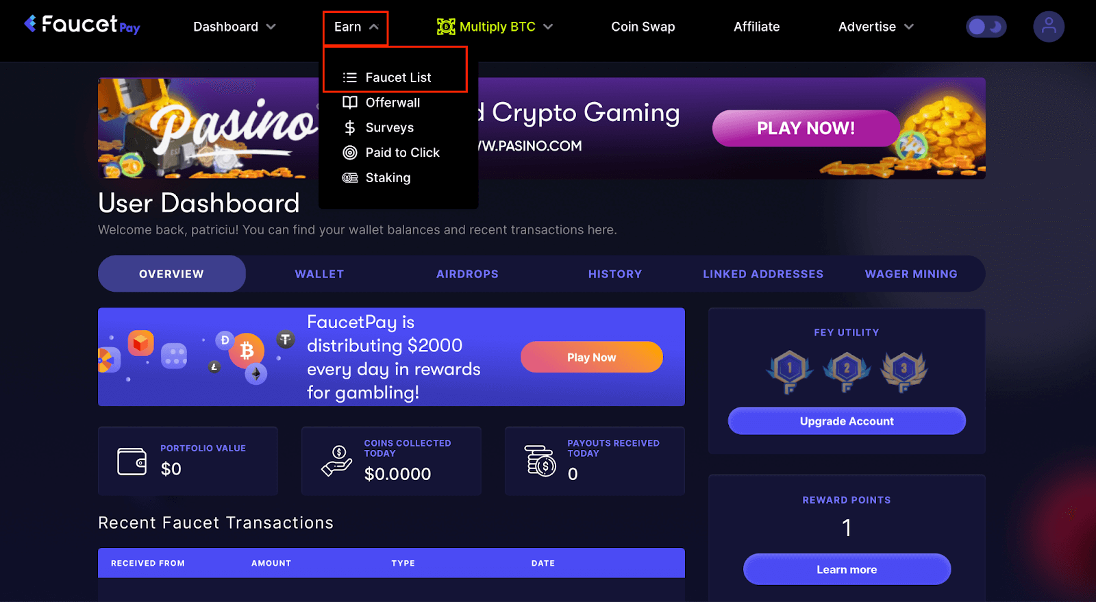 Once registered, you’ll gain access to your personal FaucetPay dashboard, where you can monitor earnings and access faucet listings.