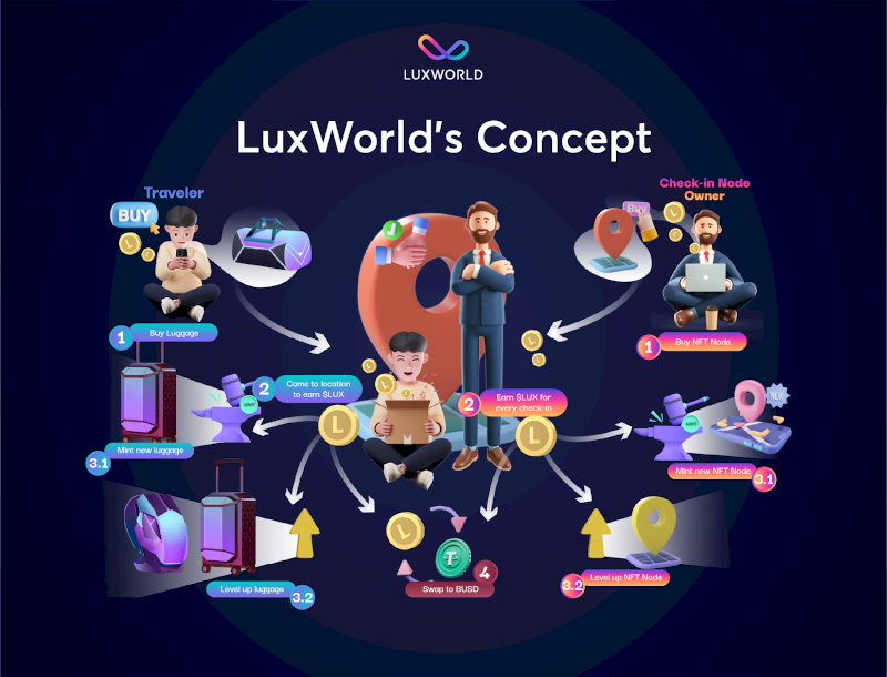 LuxWorld was inspired by many video games in the Move to Earn movement to allow players to earn money while traveling. To put it another way, this app pioneered the "Travel to Earn" or "Checkin and Earn" trend, which has raised a lot of expectations in the industry. As a result, while LuxWorld has only been announced, it already promises to be a "blockbuster," igniting the market at the perfect time during this downturn!