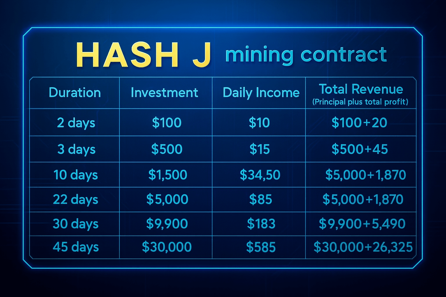 Get your $18 cash and $100 hashrate reward at https://hashj.com