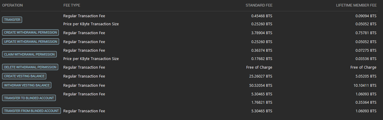 Commissions: appointed by the owners of the underlying asset of the project (BTS) and are subject to change upon their agreed decision. Fees are of two types: for ordinary participants and for owners of life membership accounts.