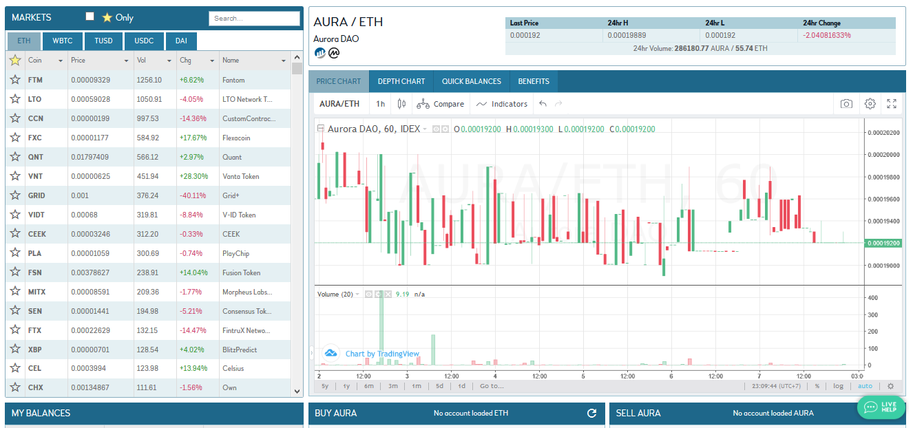 IDEX is the brainchild of the Aurora project, which issued two types of tokens: IDXM and AURA. The first ones are project membership tokens, they allow reducing the commission for trading on the exchange. The second are proof-of-stake tokens that allow you to run your own node and get a reward. AURA also allows to receive remuneration for trading on the stock exchange in accordance with the trading volume during the alpha period.