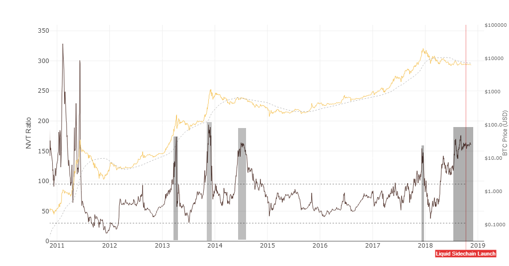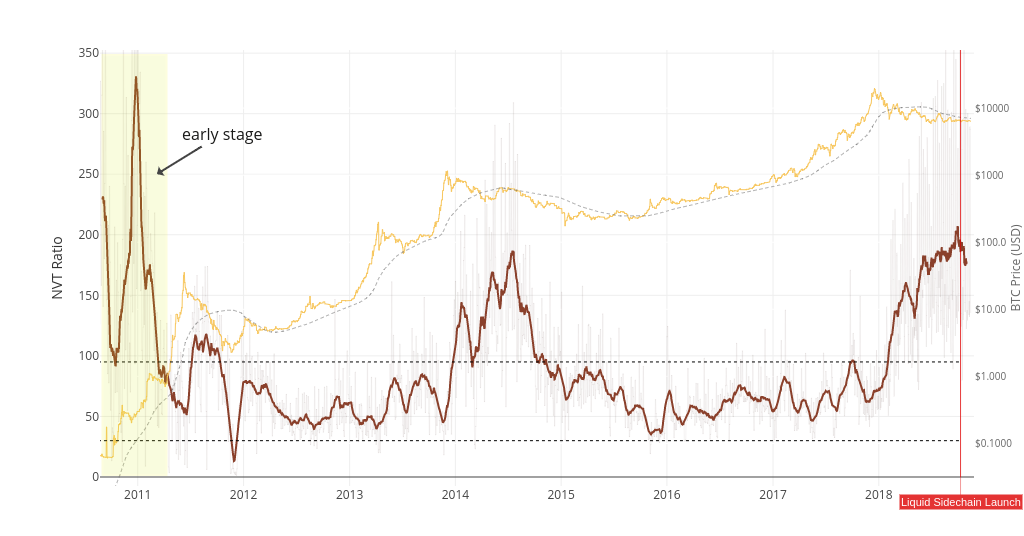 As you can see on the chart above, in the early years of the Bitcoin blockchain the market capitalization exceeded the actual transaction value. This is due to the fact that investors saw the potential of the technology and invested in it. A similar situation takes place when promising young startups that may have not launched a product on the market and started generating profits yet, have already managed to attract venture financing. Therefore, the utilization of the NVT ratio for the evaluation of new crypto assets is useless as well as for hidden and untraceable currencies like Zcash. But once an asset enters its maturity phase, NVT helps to determine when the market is overheated by speculation and the inflated market price will seek a balance with its intrinsic value.