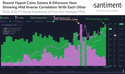 It is not a tightly kept secret that many people see Solana as the biggest competitor to Ethereum in the near future. However, all that we see now is strong pumping of funds and increased social activity likely triggered by the NFT hype.