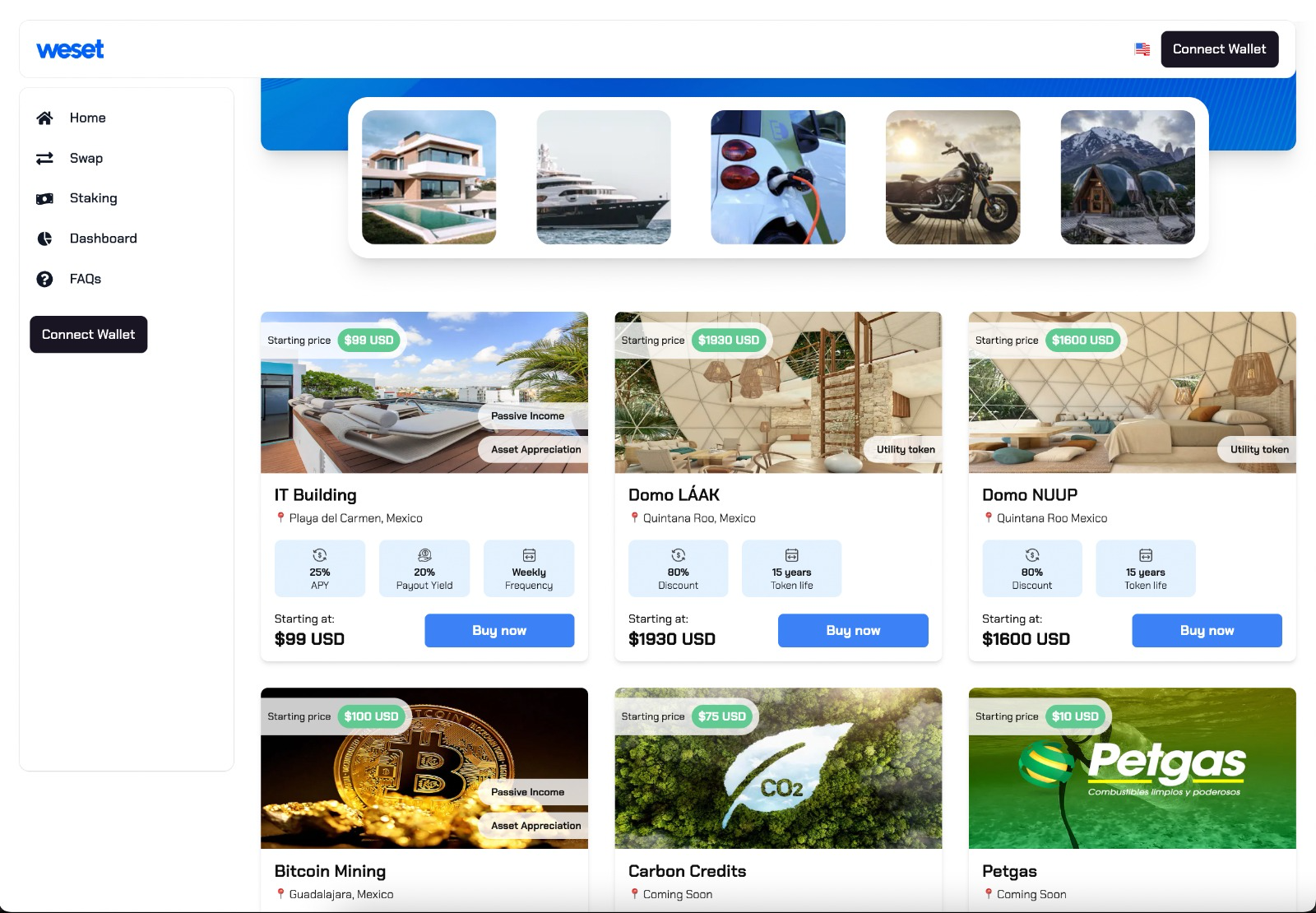 The Weset.app marketplace is an expanding hub for a variety of tokenized assets, from Bitcoin mining and Riviera Maya real estate to luxury glamping site memberships. Upcoming projects like the tokenization of plastic-to-energy facilities and Mexican bonds with high yields showcase Weset’s commitment to offering diverse investment opportunities. Through their Enterprise program, they directly with asset owners to build RWA collections that add value to the weset.app marketplace as well as $WECO holders.