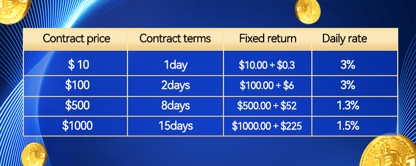 SUN Miner offers contracts that are not only straightforward but also highly diverse, providing you with a range of options to suit your investment needs. They offer stable and no-risk fixed returns.