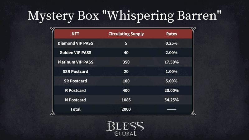AAA GameFi MMORPG Bless Global presents Whispering Barren Mystery Box