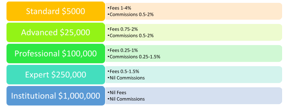 A varied fees and commission structure exists depending on the type of investor account.