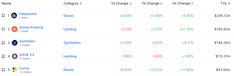 El optimismo creció más rápido en términos de valor bloqueado total (TVL) que cualquier otra de las 12 cadenas de bloques principales el mes pasado, en parte debido al mayor interés en un protocolo de préstamos DeFi de cinco meses. Los depósitos de los usuarios en Sonne Finance, una versión modificada del protocolo de préstamo basado en Ethereum Compound, casi se han quintuplicado desde mediados de febrero. El jueves (23), por ejemplo, los depósitos de los usuarios fueron de poco más de $150 millones. En comparación, la cifra era de $36 millones el 14 de febrero, según datos de DeFi Llama.