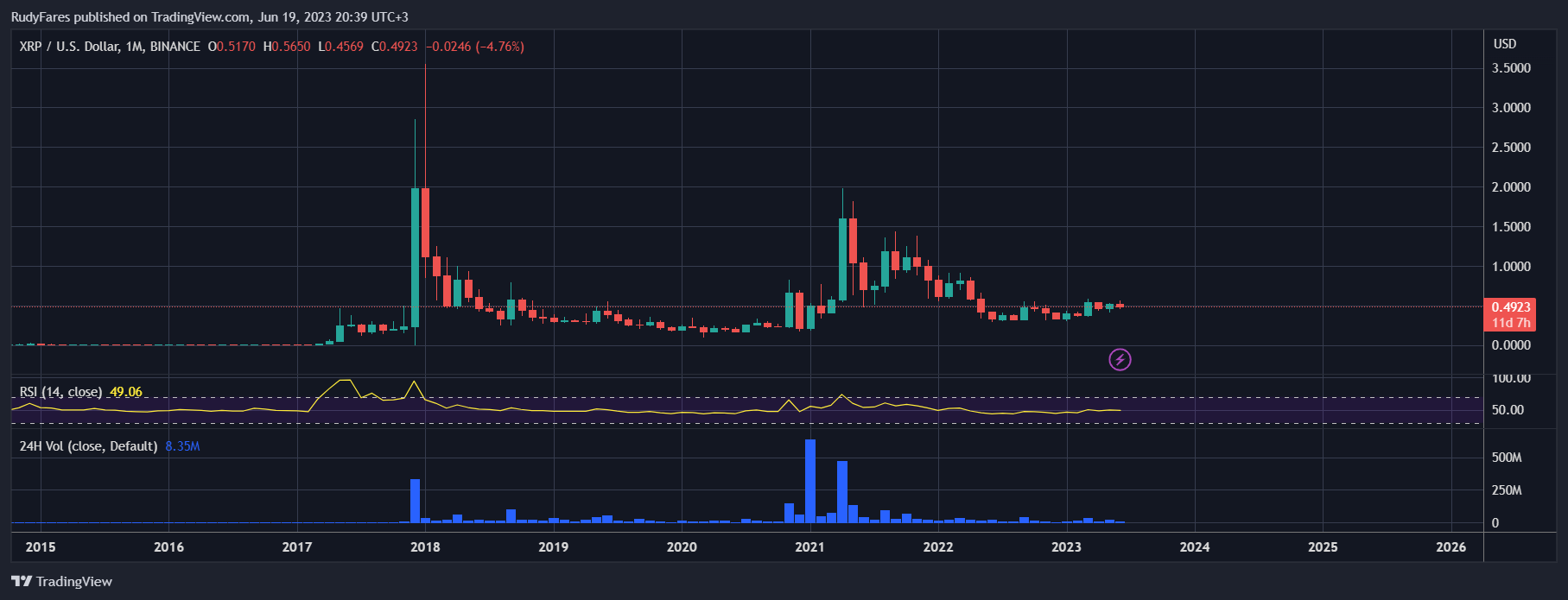Por lo tanto, al precio actual de XRP de $0.49, un inversionista necesitaría comprar aproximadamente 432,900 monedas XRP hoy para alcanzar potencialmente el estatus de millonario si el precio volviera a alcanzar su ATH.
