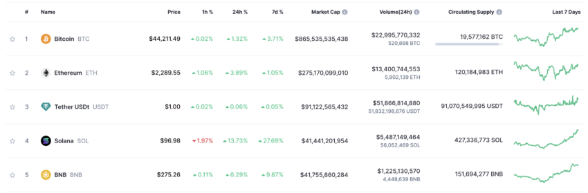 Desde el lunes, Solana (SOL) ha experimentado un rally de más del 45%, acercándose a la tan esperada marca de los 100 dólares. Ha superado a l token BNB de Binance y se ha convertido en la cuarta criptomoneda con mayor capitalización de mercado.