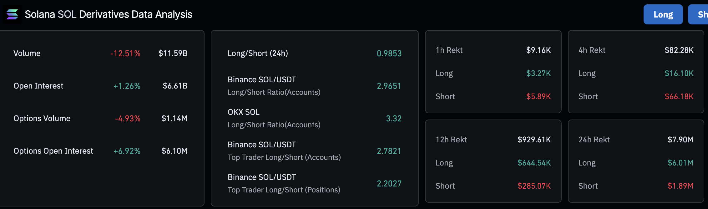 Estadísticas de derivados de Solana | Fuente: CoinGlass
