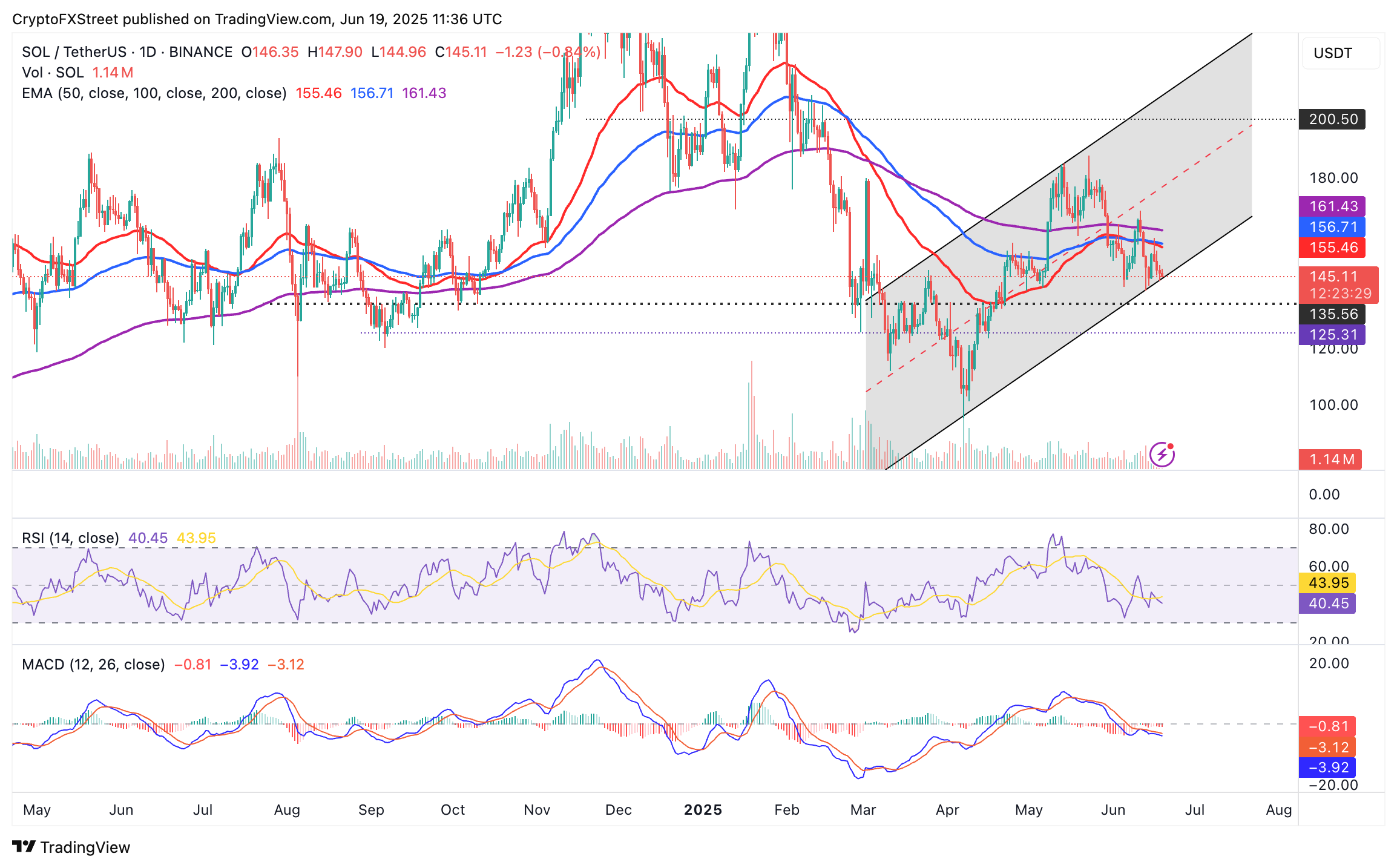 - La tendencia bajista de Solana se extiende, probando el soporte del canal ascendente alrededor de 145$.