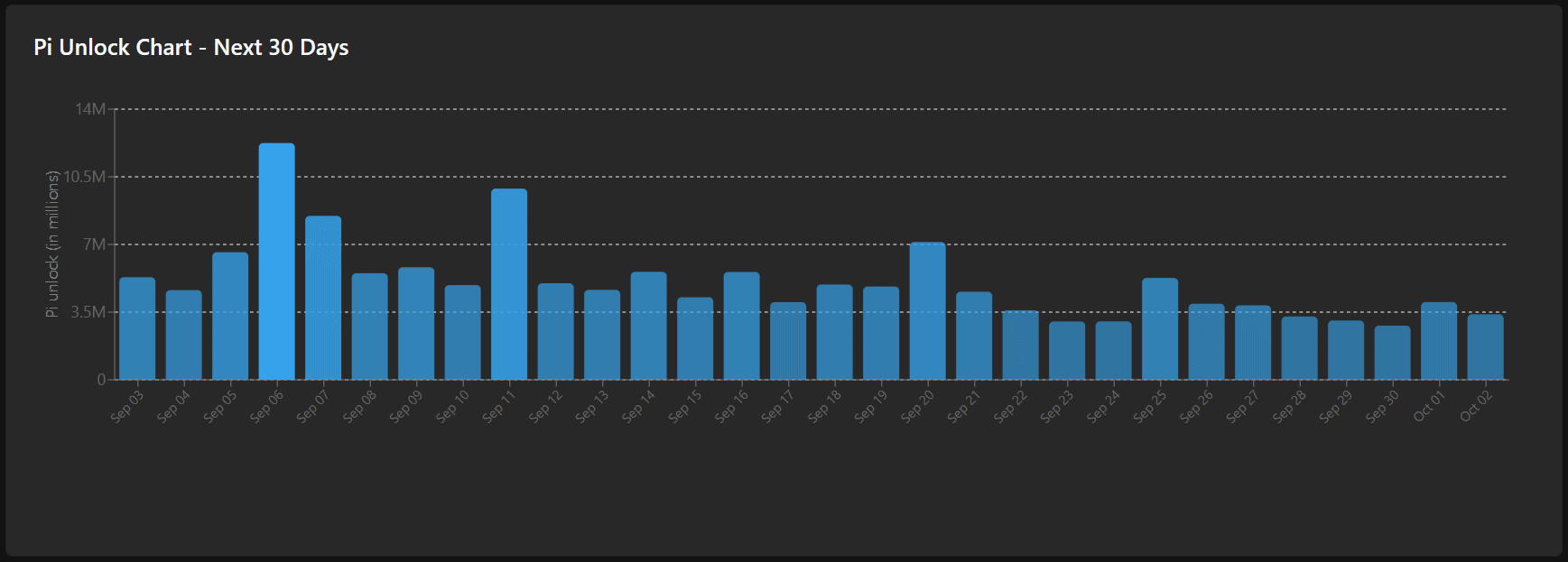 Pero como es habitual, hoy se liberará otra tanda de tokens Pi: alrededor de 5,3 millones, valorados en unos $1,8 millones. El mayor desbloqueo del mes será este sábado 6, con más de 12 millones de tokens emitidos, por un estimado de más de $4 millones.