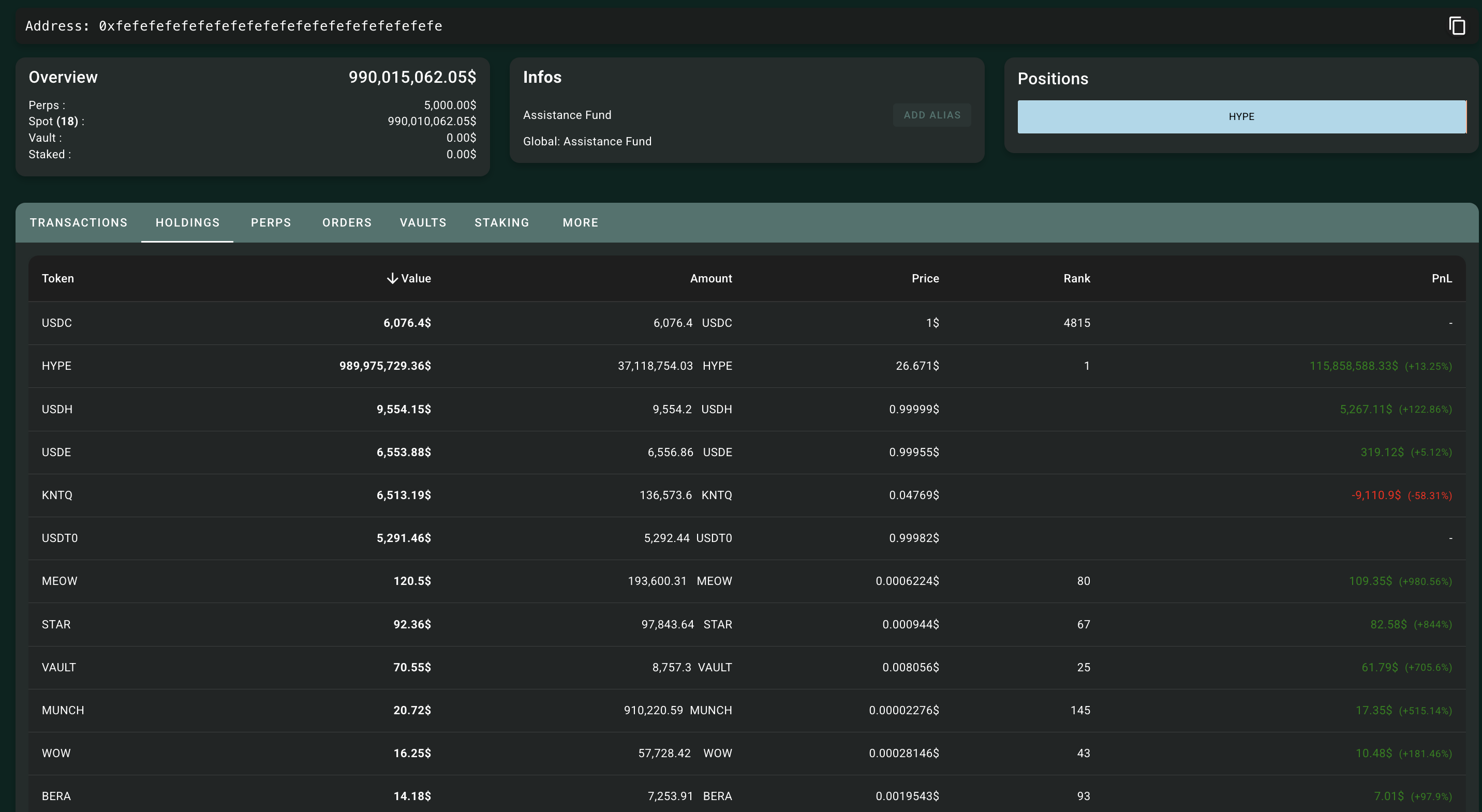 Fondo de asistencia Hyperliquid. Fuente: HypurrScan