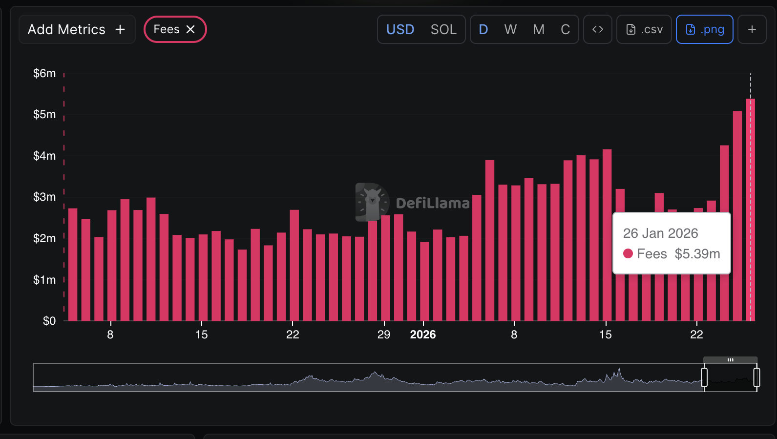 Las tarifas recaudadas por trading y lanzamiento de monedas meme también han aumentado en más del 21% a 5,4 millones de dólares a partir del lunes desde 2,7 millones de dólares el jueves. Este aumento sugiere que los lanzamientos de monedas meme y la actividad de trading están ganando impulso entre los inversores que buscan oportunidades alternativas a los activos criptográficos principales.
